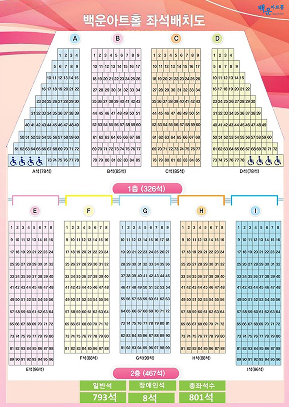 Since 2013, as part of POSCO¡¯s social responsibility initiative, Baekun Art Hall has provided a free venue for talented groups and individuals to stage their own shows. Reopening after a renovation in 2018, the Hall can now seat 801 people, with 8 accessible seats, and offers a pleasant and welcoming environment.